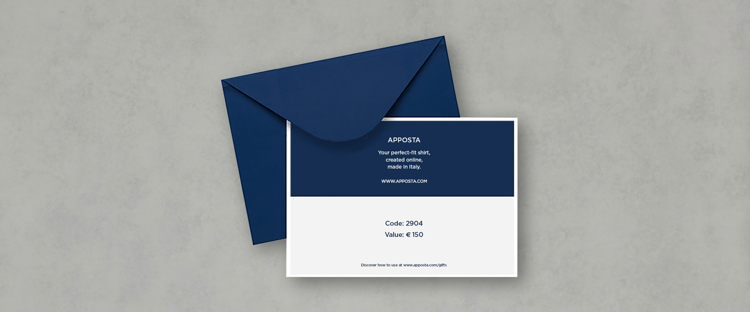 Con la gift card digitale di Apposta avrai la certezza di fare un regalo all’altezza delle aspettative di chi lo riceve. Acquistando la gift card, il destinatario potrà creare una camicia che rispecchia esattamente il suo stile personale e le sue misure.