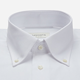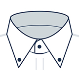 El button-down bajo tiene puntas muy cortas y ofrece un look moderno e informal. Su banda baja favorece a los hombres de rostro redondo. Se puede llevar con corbatas finas.