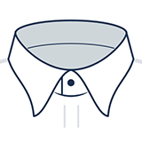 Il collo button down piccolo si caratterizza per la lunghezza delle punte molto corte e offre uno stile casual e di tendenza. È adatto per chi ha il viso rotondo. Si può portare con una cravatta sottile.