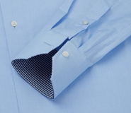 E' una delle finiture più richieste. Si tratta di un riporto di tessuto di colore in contrasto con la camicia applicato all'interno dei polsi, all'interno della finta nel lato dei bottoni e all'interno dello spallone. Con questa finitura la camicia si presenta classica se allacciata, mentre sbottonandola cambia connotazione e diventa casual.