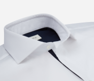 Per chi vuole distinguersi mantenendo un aspetto elegante e glamour consigliamo di aggiungere alla propria camicia i colli e i polsi con colore in contrasto. Tipicamente viene scelto un tessuto bianco su una camicia azzurra, ma Apposta consiglia anche altri accostamenti: es. camicia bianca con collo e polsi neri.