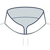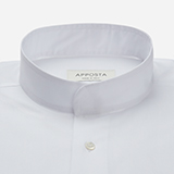 Our band collars have different shapes and provide the option to have a top button or no top button. This collar type is particularly useful for hot weather and can be used to create a linen shirt to keep cool in.