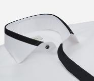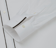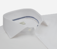 This option presents a contrast inside cuff, a white inset inside the shoulders (yoke) and the fabric edges which go around the collar. It's a finishing suitable for all occasions.