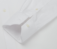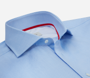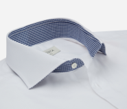 This has a contrast detail inside the collar band which allows for a discreet hint of style when the shirt is open, yet disappears when closed – making it suitable for all occasions.