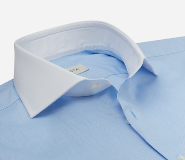 White poplin on a light blue based shirt is a typical choice. Apposta also recommends other combinations, such as a white shirt with black collar and cuffs.