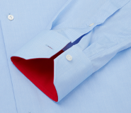 One of the most appreciated finishes in Italy. It is a choice of patterned or bold fabric applied inside the collar band and the cuffs. The shirt is of classic-type when worn open-necked while when unbuttoned with the cuffs turned up on the sleeves. Its connotation changes to sporty and casual.